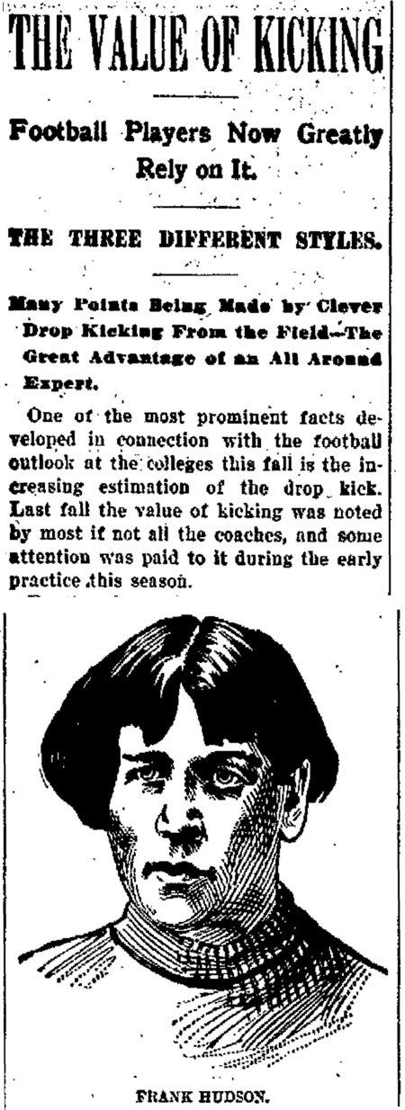 “When I was coaching at Cornell in 1897, I had the scrub team work the hidden ball play against the varsity in a practice game. The later in the season against Penn State, the hidden ball play was used for the first time in a game. In those days, Penn State was not as strong on the gridiron as they would later become and this game was merely a workout for Cornell.