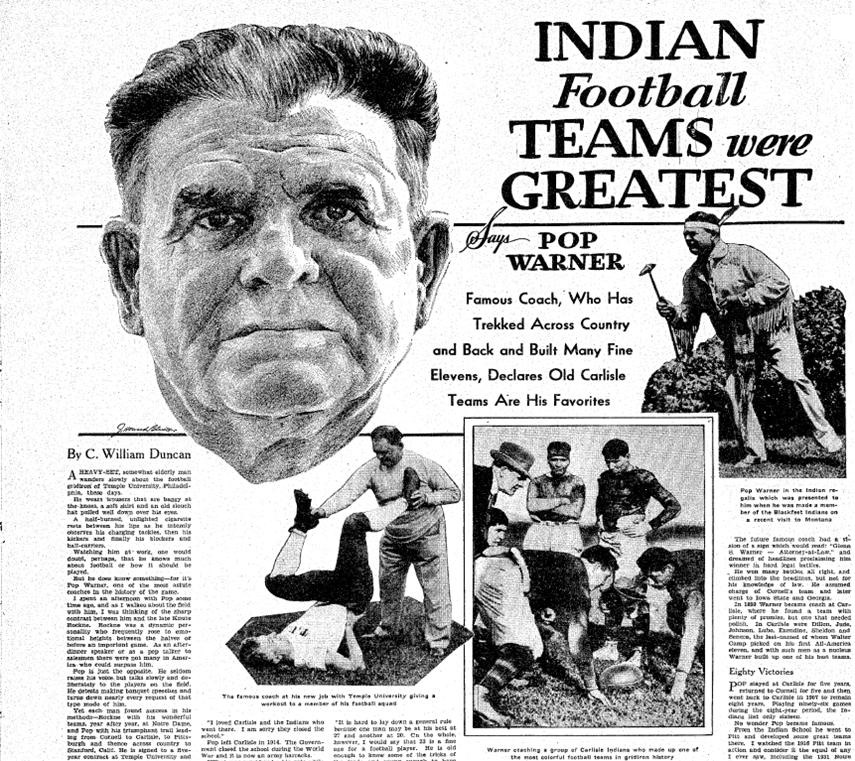 Things didn’t always have to happen the way they turned out although histories often read as if they were preordained. For one example, it wasn’t a sure thing that Pop Warner would return to coach Carlisle in 1907 and change the course of football forever. The Indian School surely wasn’t able to pay him as much as the large universities could. When Warner’s Stanford team was in Minneapolis in October 1930 to play the Gophers, as guest of honor at the local Rotary Club meeting, he gave a talk. Included in the talk was the story of how he returned to Carlisle for a second stint as the Indians head coach.