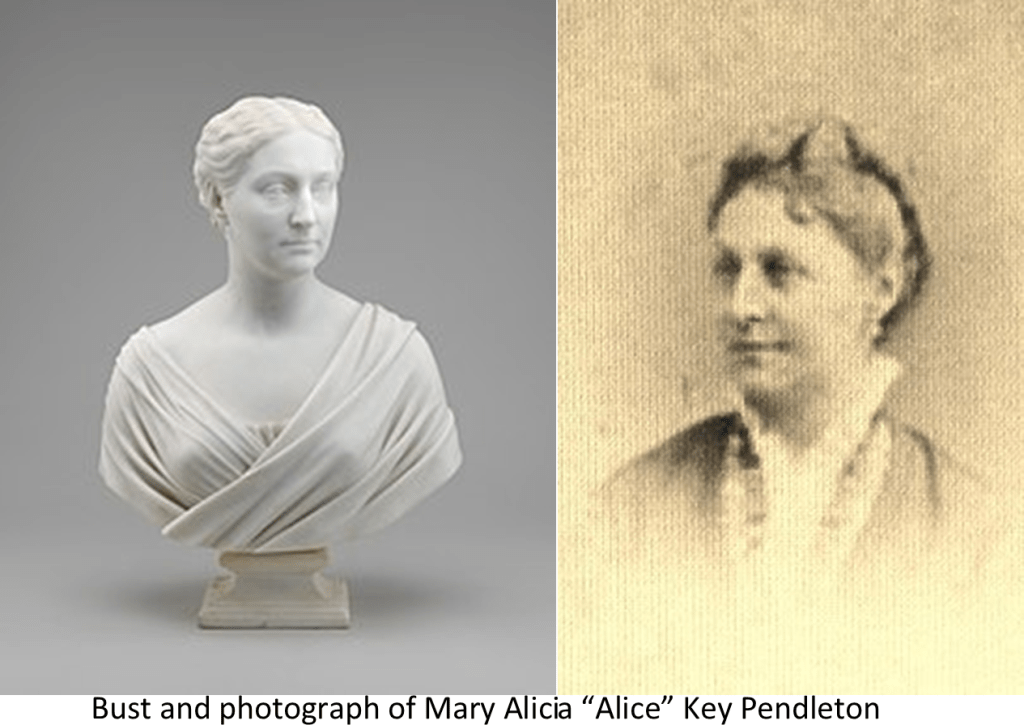 Mary Alicia Key Pendleton, wife of Senator George Hunt Pendleton of Cincinnati, Ohio and daughter of Francis Scott Key, spent much of the 1876-77 winter in St. Augustine, Florida. While there, she organized an archery club and applied to Richard Henry Pratt to detail two Indian prisoners at nearby Fort Marion to teach a class of ladies how to shoot bows and arrows. Pratt assigned the task to Making Medicine, Cheyenne aka Oakereater, and Playing Boy, Kiowa aka Etahdleuh Doanmore. So, after only a year and a half of confinement, the prisoners no longer scared the townspeople, at least some of them. One supposes that Mrs. Pendleton figured that if her father could survive the shelling of Fort McHenry, she could manage contact with a few Indians. The young men worked with the club throughout the winter. During this time, Mrs. Pendleton became much interested in the two young men and gave them presents. When their incarceration was over, she paid their expenses to travel to Syracuse to become educated by an Episcopal minister.