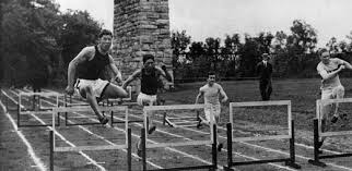 The May 9 dual meet with State College must not have taken place. Both schools’ newspapers announced it preceding the event, but neither published the results. And no coverage was found in regular newspapers. Perhaps weather conditions caused it to be canceled. Next up was a May 14 dual meet with Syracuse at Elmira, New York. Steady rain and chilling temperatures prevented record times from being posted. Frank Mt. Pleasant, who was training for the Olympic tryouts, didn’t participate but Jim Thorpe did well scoring 21 of the winning team’s points. He won the 120-yard hurdles, 220-yard hurdles, and running high jump, while place second in the shot put and broad jump.