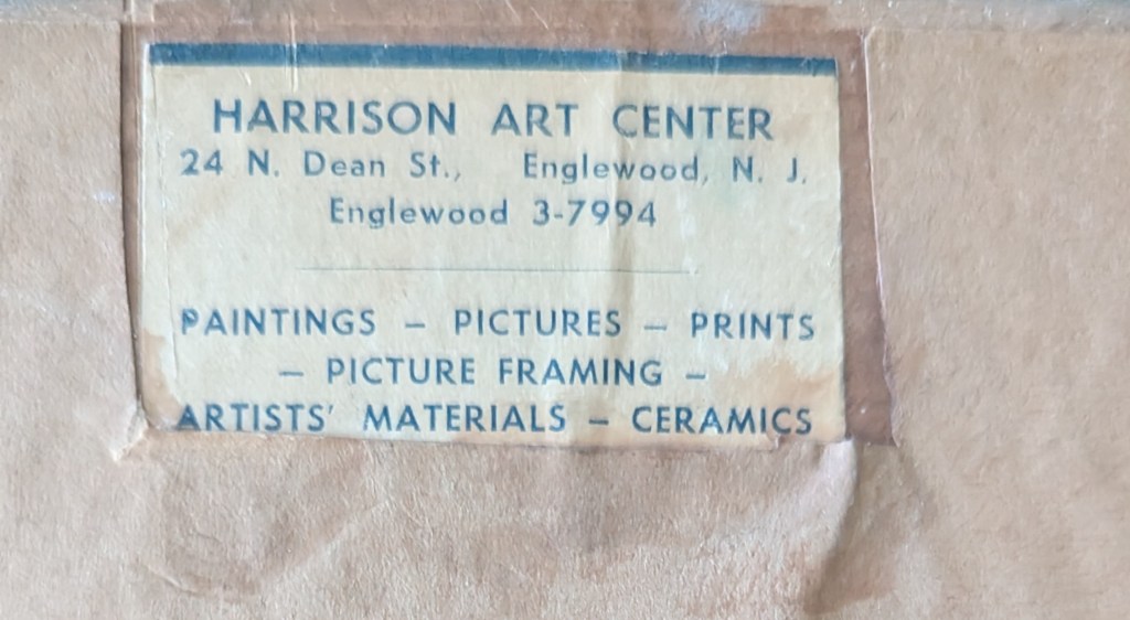 The first photo is of a harbor scene painted on a canvas board (included above). The artist’s signature is located in the lower right hand corner and is blown up in the third photo (at the bottom of this article). The second photo (below)is of the back of the painting. Harrison Art Center may be where Dietz bought art supplies and had paintings framed while he was assisting Pop Warner coach the Temple Owls football team. The store seems to be no longer in business.