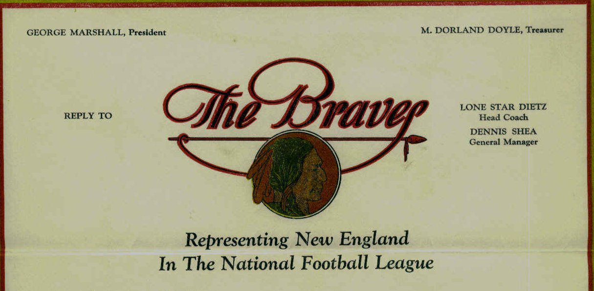 Banzhaf says nothing about Marshall’s primary reason for changing the team’s name as stated in both articles: confusion with the Boston Braves baseball team. On the surface, this reason is, to use a technical term, hogwash. NFL teams routinely capitalized on the name recognition of baseball teams in those ragtag years. The Cleveland Indians, Pittsburgh Pirates, Brooklyn Dodgers, Cincinnati Reds, Detroit Tigers, New York Yankees, and Washington Senators football teams were all named after the baseball teams in their cities. The Giants still use the name decades after the baseball team abandoned New York for San Francisco. Marshall had done that in 1932 when he named his team the Boston Braves but something was changing.